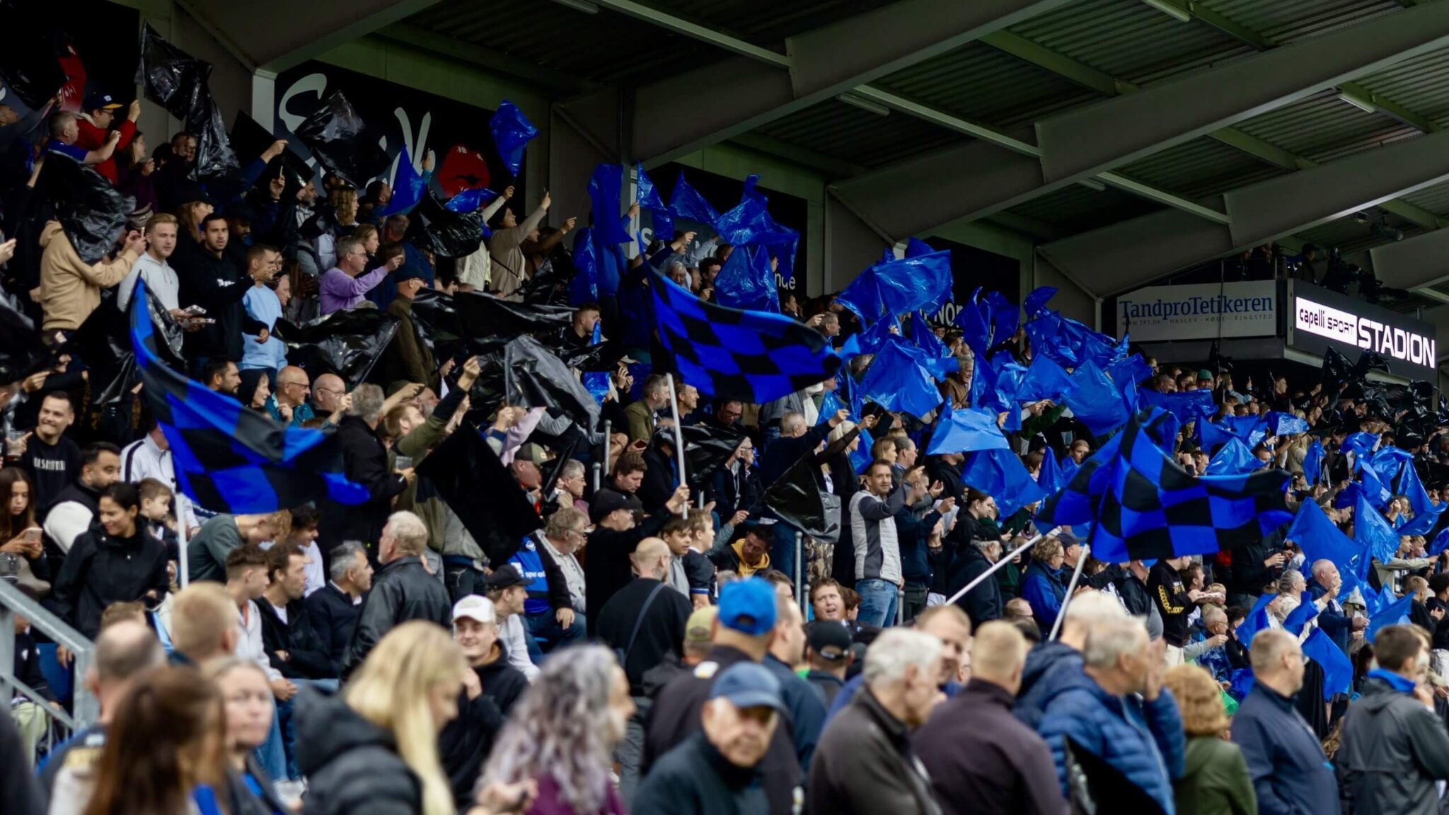 Herfølge Stadion klædt i sort og blåt